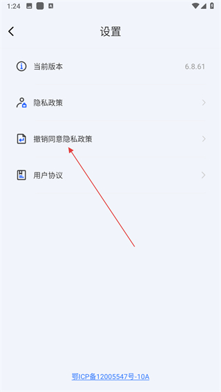 3、找到撤銷同意隱私政策選項(xiàng)并點(diǎn)擊,彈出撤回隱私政策的確認(rèn)窗口。