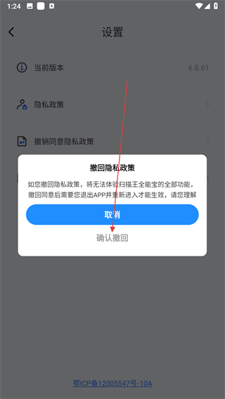 4、在確認(rèn)窗口中,點(diǎn)擊確認(rèn)撤回按鈕,即可完成隱私政策的撤回操作。