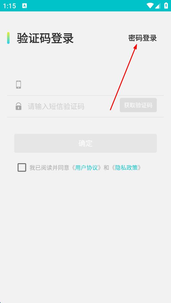 1、打開某APP,進(jìn)入登錄頁面,點(diǎn)擊“密碼登錄”選項(xiàng)。