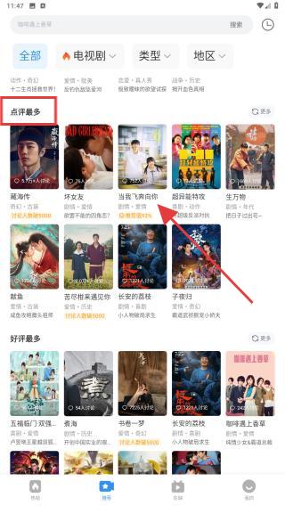1、打開APP進(jìn)入到推薦的頁(yè)面,找到并點(diǎn)擊點(diǎn)評(píng)最多的電視劇。