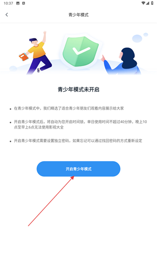 4、在青少年模式的頁(yè)面內(nèi),熟知后點(diǎn)擊開啟按鈕即可。