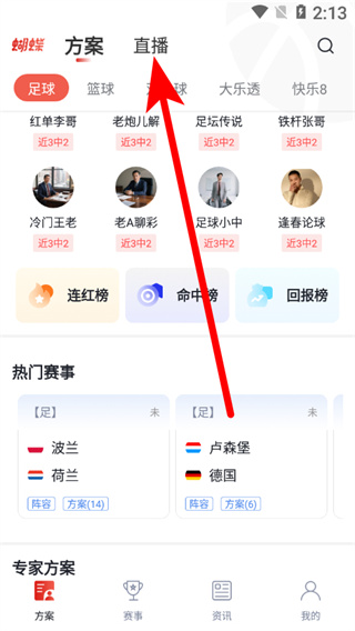 1、在蝴蝶app首頁,點(diǎn)擊直播選項(xiàng),進(jìn)入直播板塊頁面。