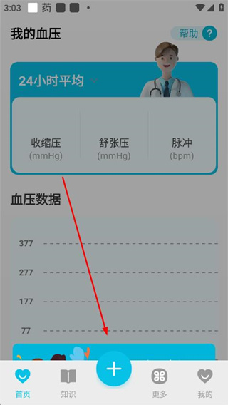 1、在血壓寶的首頁,點擊底部的+,進入新記錄頁面。