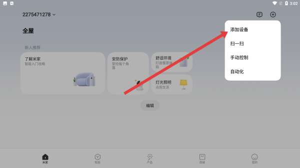 1、在米家app首頁中,點擊右上角的添加設備按鈕選擇設備添加。
