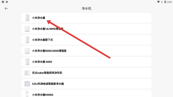 3、在凈水機多種型號號中,點擊選擇小米凈水器進行添加。
