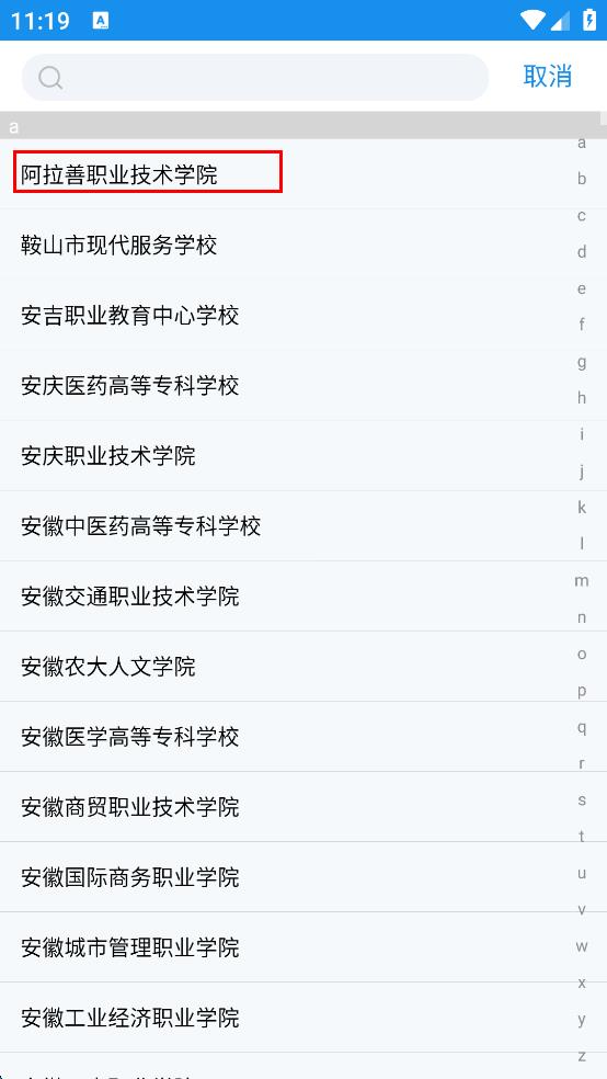 2、在學校選擇頁面,選擇所在學校,進入實習管理信息化平臺登錄頁面。