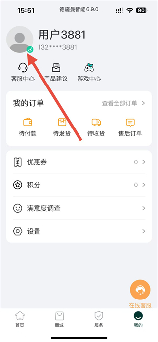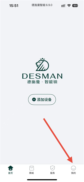 1、打開德施曼智能應(yīng)用,點擊首頁底部的我的選項,進入個人界面。