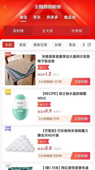 2、免費(fèi)獲得優(yōu)惠券,各種主流電商平臺優(yōu)質(zhì)商品,等你低價帶回家。