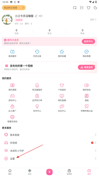 2、在我的頁面中,找到并點擊設置按鈕,進入設置頁面。