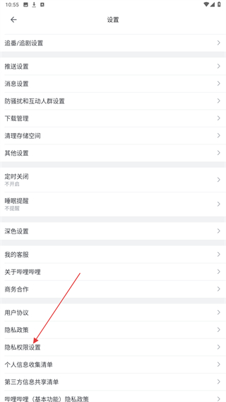 3、進入設置的頁面中,找到并點擊隱私權限設置的選項。