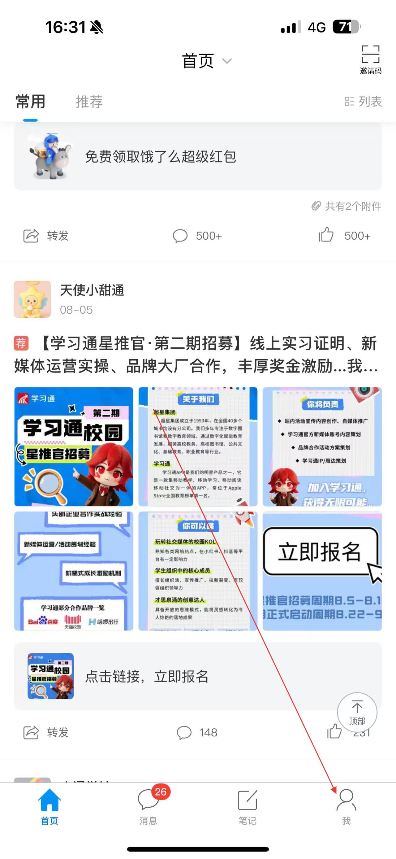 1、打開超星學(xué)習(xí)通App,點(diǎn)擊底部導(dǎo)航欄中的我進(jìn)入個(gè)人界面。