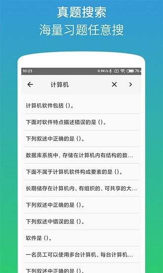 計(jì)算機(jī)二級(jí)office題庫(kù)手機(jī)軟件是專為計(jì)算機(jī)二級(jí)Office備考用戶打造的實(shí)用工具,全面覆蓋備考所需的Office相關(guān)知識(shí)內(nèi)容,軟件既支持專項(xiàng)突破練習(xí),也能進(jìn)行真題實(shí)戰(zhàn)演練,還提供筆記記錄、題目收藏功能,搭配詳細(xì)刷題數(shù)據(jù)統(tǒng)計(jì),幫助用戶精準(zhǔn)掌握復(fù)習(xí)進(jìn)度、提升備考效率,有需要的朋友趕快下載體驗(yàn)。