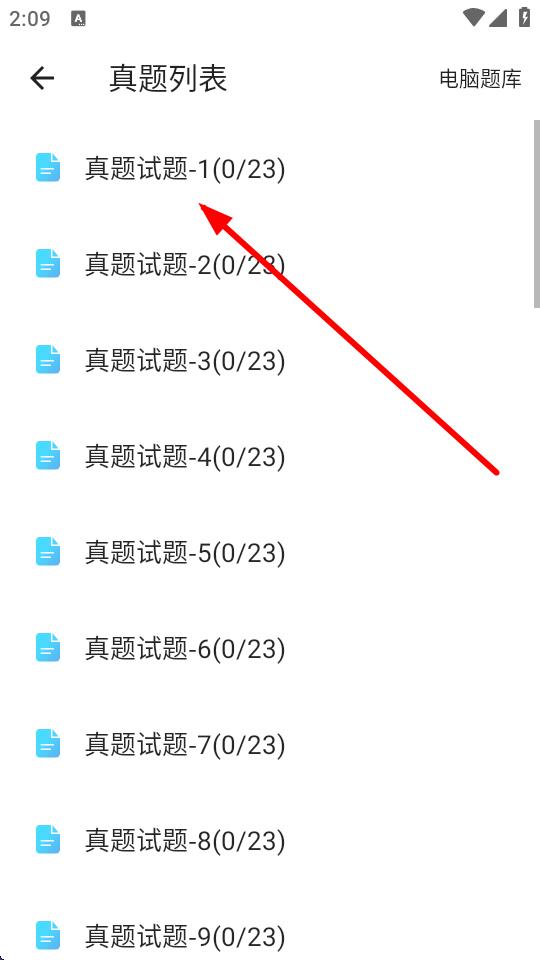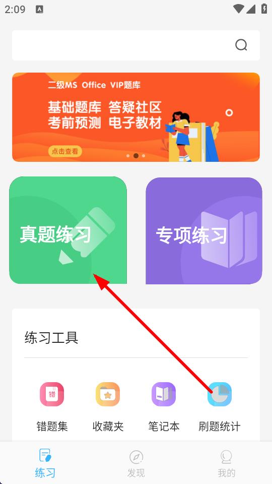 1、在練習(xí)的頁(yè)面,可以選擇點(diǎn)擊真題練習(xí),進(jìn)入真題列表界面。