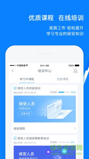 在線高品質(zhì)專業(yè)培訓(xùn)課程,保安員資格證、等級考試報(bào)名、培訓(xùn)、考試整體解決方案,量身打造企業(yè)專屬學(xué)習(xí)平臺,提升員工能力。