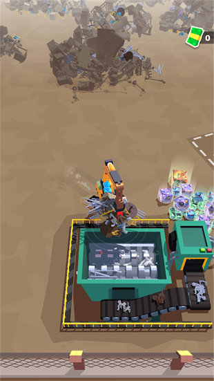 用垃圾處理工具完成任務(wù),使用磁鐵和垃圾清運車處理后方的所有垃圾,賺取收入。