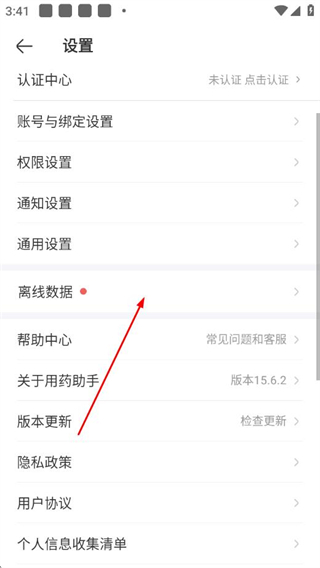 3、在設(shè)置頁面點擊離線數(shù)據(jù)選項,進(jìn)入離線數(shù)據(jù)管理頁面。