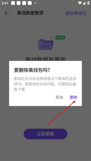 5、在提示框中點擊刪除按鈕,即可完成離線包的刪除操作。