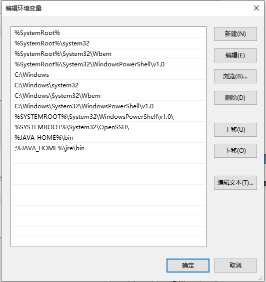 10.在Path變量中增加兩項,分別是“%JAVA_HOME%\bin”“%JAVA_HOME%\jre\bin”。