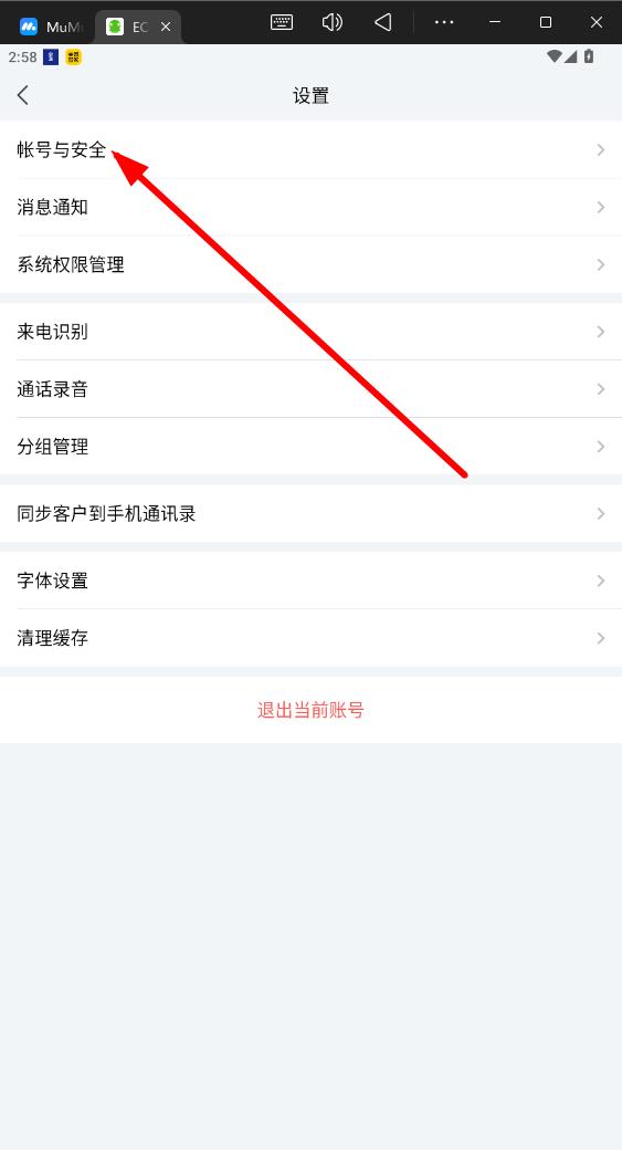 3、在設(shè)置頁面里,點擊帳號與安全選項。