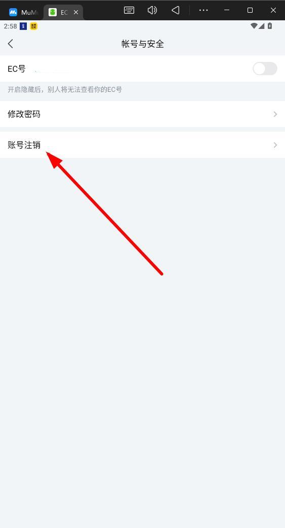 4、進入帳號與安全頁面后,點擊賬號注銷選項,按照后續(xù)提示完成注銷操作。