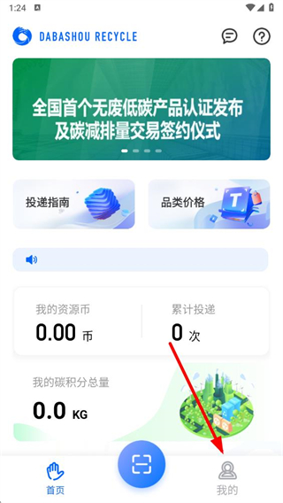 1、打開搭把手回收app,點(diǎn)擊底部導(dǎo)航欄中的我的選項(xiàng)。