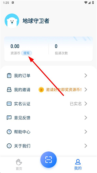 2、在我的頁面,找到資源幣數(shù)額旁的提現(xiàn)按鈕并點(diǎn)擊。