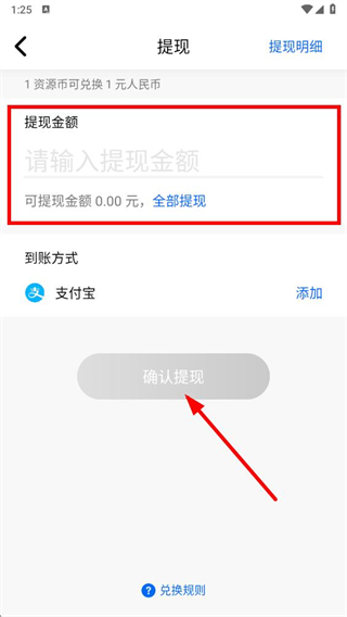 4、在提現(xiàn)頁面,輸入提現(xiàn)金額,到賬方式為支付寶,也可添加其他方式,點(diǎn)擊確認(rèn)提現(xiàn)即可。
