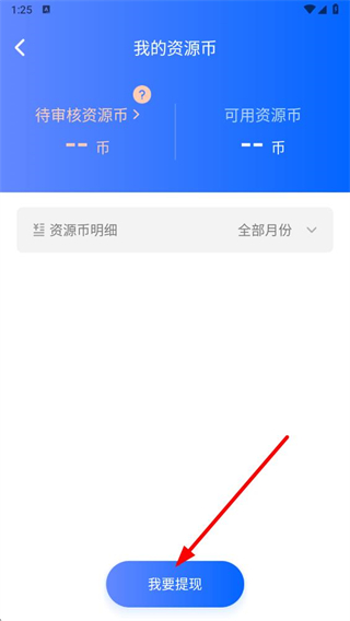3、進(jìn)入我的資源幣頁面后,點(diǎn)擊下方的我要提現(xiàn)按鈕。