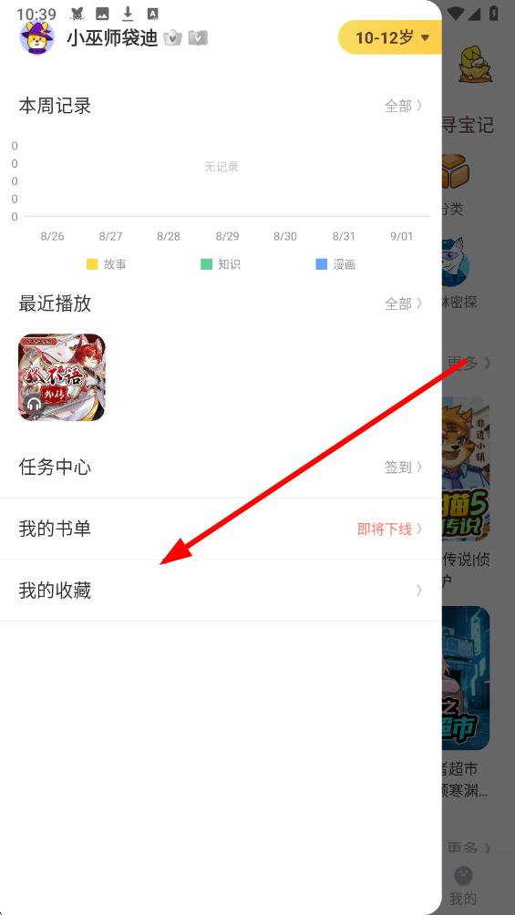 2、在側邊菜單欄中,下方頁面找到并點擊我的收藏選項。