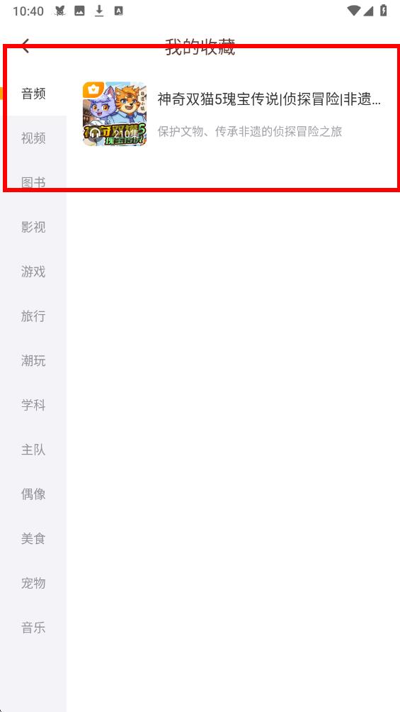 3、進入我的收藏頁面后,即可查看已收藏的內容,包括音頻、視頻等不同類型的收藏資源。
