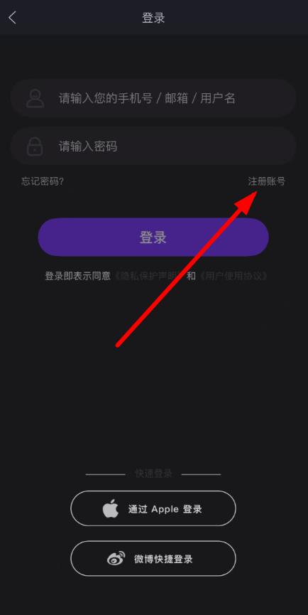 1、打開漫畫島APP進(jìn)入登錄界面,點擊界面右上角的注冊賬號選項,進(jìn)入注冊頁面。