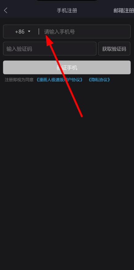 2、在注冊頁面,選擇手機(jī)注冊方式,在對應(yīng)輸入框內(nèi)準(zhǔn)確輸入自己的手機(jī)號,然后點擊獲取驗證碼。