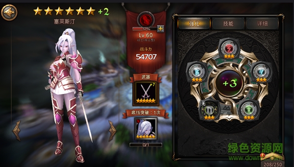 強化功能中,有5個符文,每當(dāng)鑲嵌一個符文時,英雄的屬性便可提升。當(dāng)五個符文全部鑲嵌完成,英雄即可強化升級,屬性得到大幅度提升,每個英雄最多可強化至+7