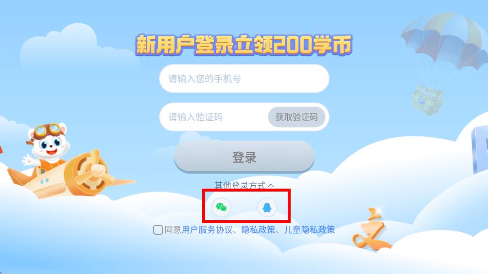 2、若您不想使用手機號登錄,也可點擊其他登錄方式選擇微信或QQ進行登錄。