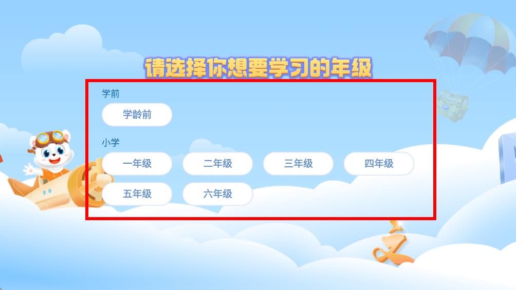 3、成功登錄后在彈出的請選擇你想要學習的年級,根據(jù)自身需求選擇階段的對應年級,即可進入應用開始使用。