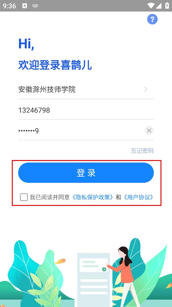 4、勾選我已閱讀并同意隱私保護(hù)政策和用戶協(xié)議,點(diǎn)擊登錄按鈕,進(jìn)行登錄操作。