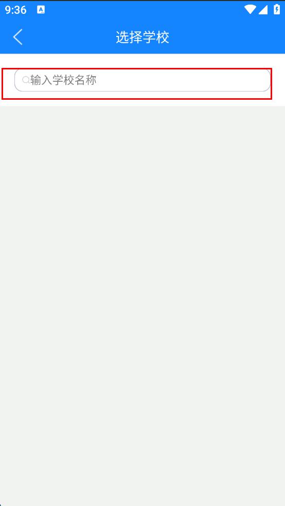 2、在選擇學(xué)校頁(yè)面,輸入學(xué)校名稱,完成學(xué)校選擇操作。