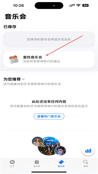 2、進(jìn)入音樂(lè)會(huì)的頁(yè)面內(nèi),點(diǎn)擊查找音樂(lè)會(huì)的按鈕。
