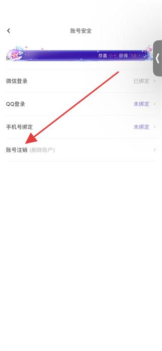 3、在賬號安全頁面,點擊賬號注銷刪除賬戶選項。