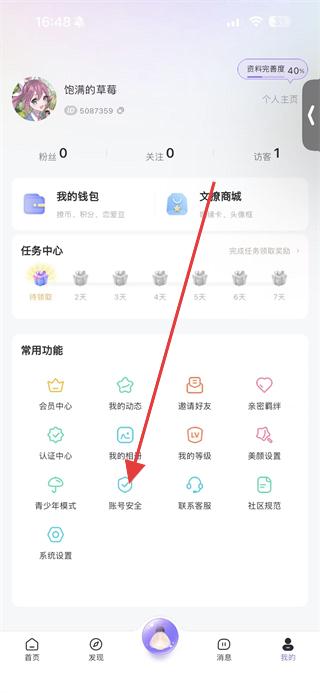 1、打開文撩APP,點擊右下角我的,進入個人功能頁面。