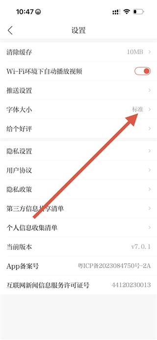 3、在設置頁面,點擊字體大小選項,進入字體調(diào)整界面。