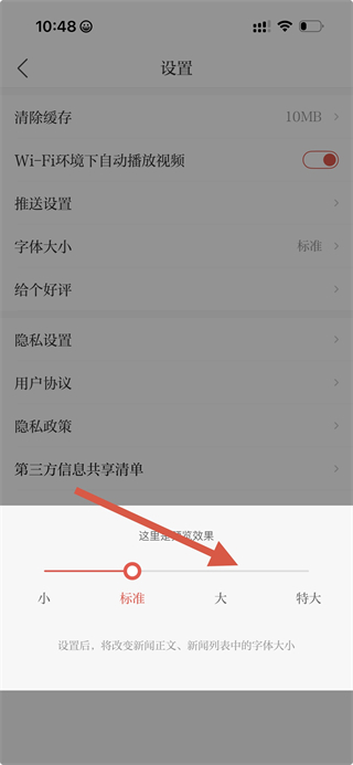 4、在字體調(diào)整界面,選擇所需字體大小,即可完成設置操作。