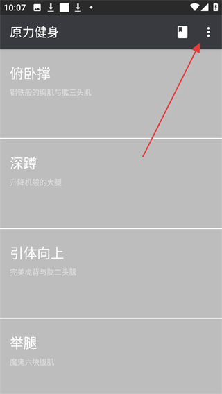 1、打開原力囚徒健身app,在首頁點擊右上角的三點圖標(biāo)。