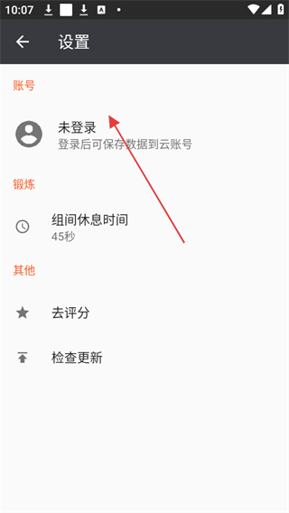 3、進(jìn)入設(shè)置頁面后,點擊賬號欄下顯示的未登錄。