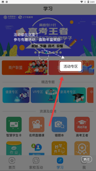 3、在學習頁面中,找到并點擊活動專區(qū)入口,參與其中趣味活動,可贏取豐富獎勵,助力學習體驗升級。