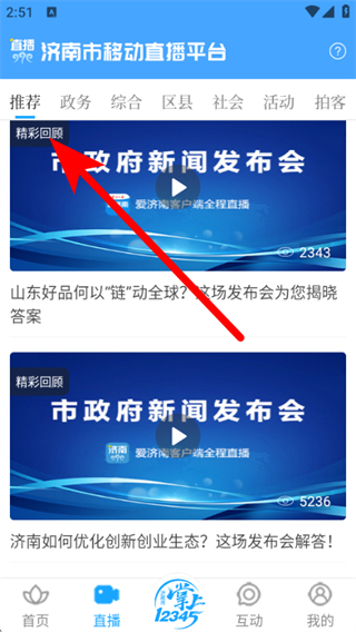 2、在直播頻道,找到精彩回顧板塊,選擇想看的直播回放內(nèi)容。