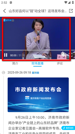 3、點(diǎn)擊所選直播回放,進(jìn)入播放頁(yè)面即可觀看,可查看直播內(nèi)容等信息。