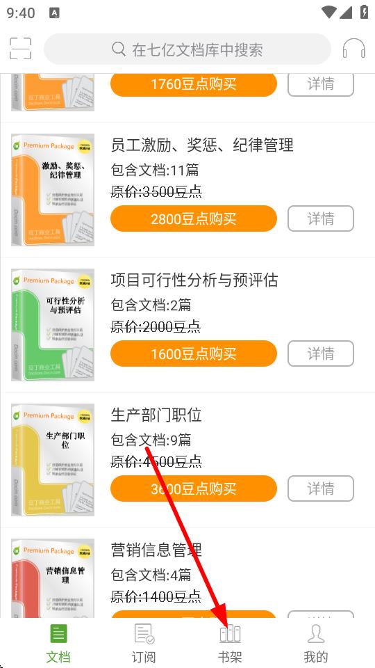 1、打開豆丁書房應(yīng)用,點(diǎn)擊底部導(dǎo)航欄中的書架選項(xiàng),進(jìn)入書架頁面。