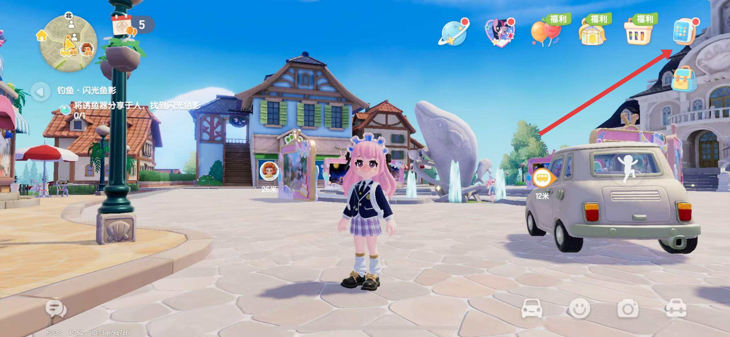 1、進(jìn)入心動小鎮(zhèn)游戲主界面點擊右上方手表標(biāo)識,打開功能菜單界面。