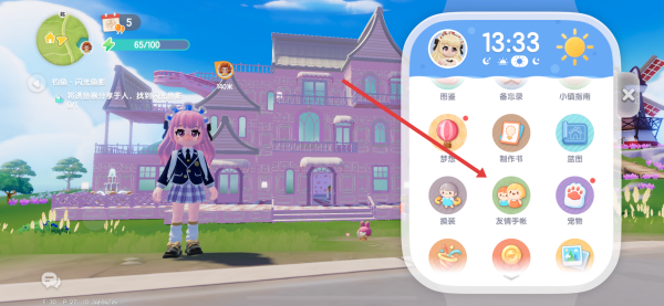 2、在功能菜單界面,找到并點擊友情手帳的選項,進(jìn)入好友相關(guān)的操作界面。